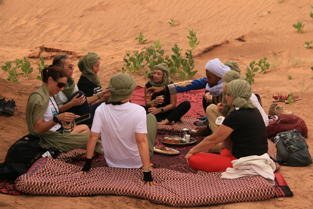 Cette journée conjugue mouvement, méditation, découverte sensorielle et culture nomade, renforçant votre connexion avec la nature et le rythme du Sahara.