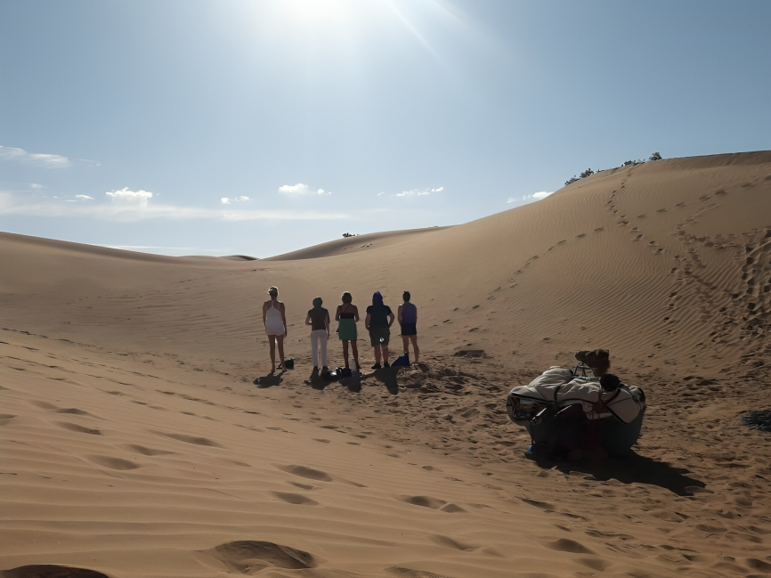• Le moment fort : L’installation de votre bivouac sauvage au cœur des premières dunes et le partage d’une veillée authentique autour du feu de camp.