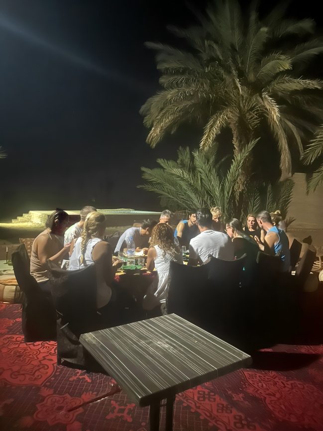 Votre soirée au Bivouac Fixe : Après votre installation, un rafraîchissement vous attend au coeur de la palmeraie. Cette première nuit dans notre bivouac tout confort est l’occasion d’un dîner traditionnel et d’une soirée musicale conviviale autour du feu. C’est ici, dans la sérénité du désert, que commence véritablement votre déconnexion avant le départ du trek mixte le lendemain.