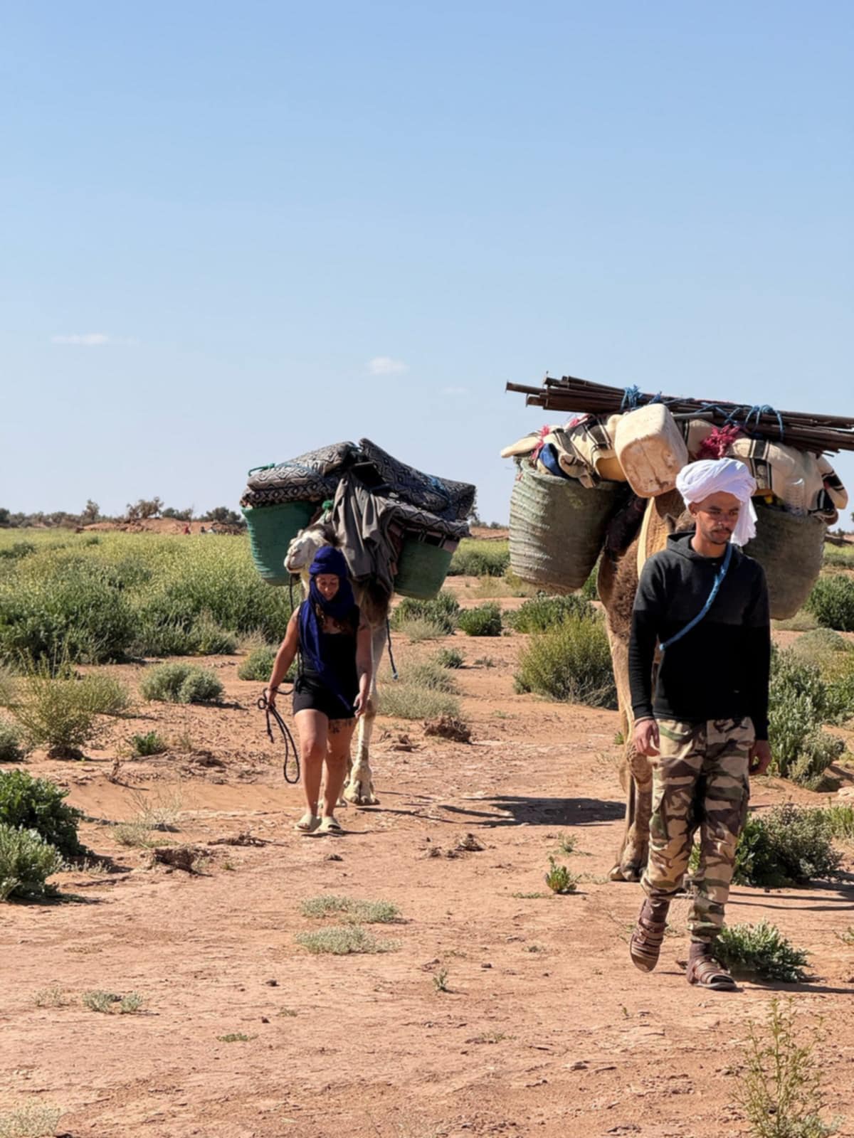 • Rythme Nomade : Une marche rythmée par la caravane de dromadaires qui transporte votre campement.