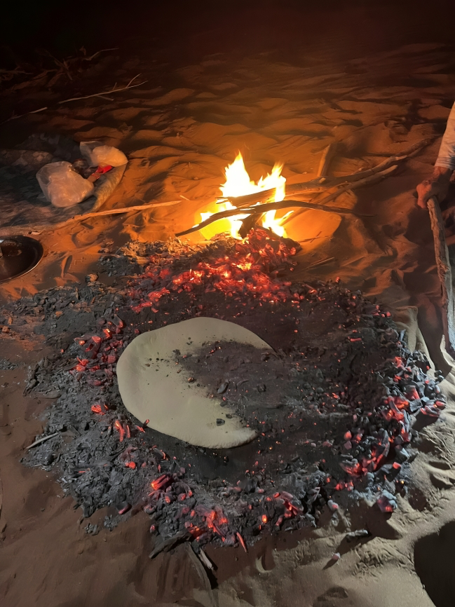 • Point fort de la journée : L’atelier de confection du pain nomade dans le sable, un moment de partage authentique autour du feu de camp.
